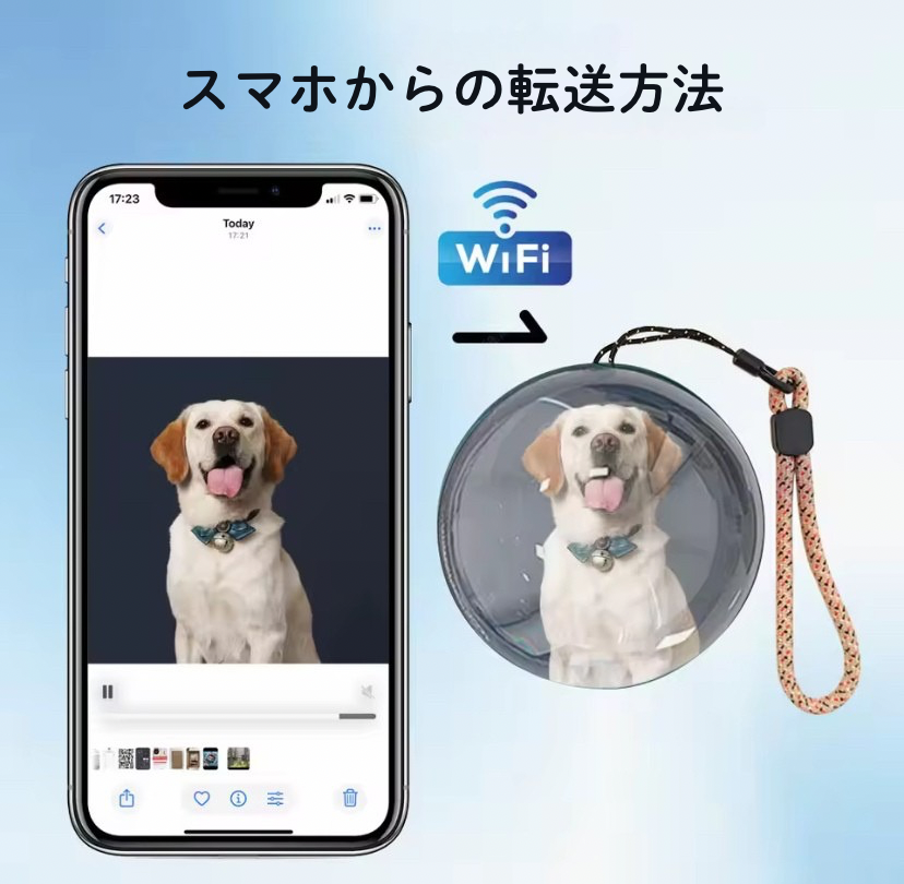 スマホアプリとパソコンからのインポート方法があります。付属のUSBケーブルで繋いで動画ファイルをコピー&ペーストすると、再生されます。